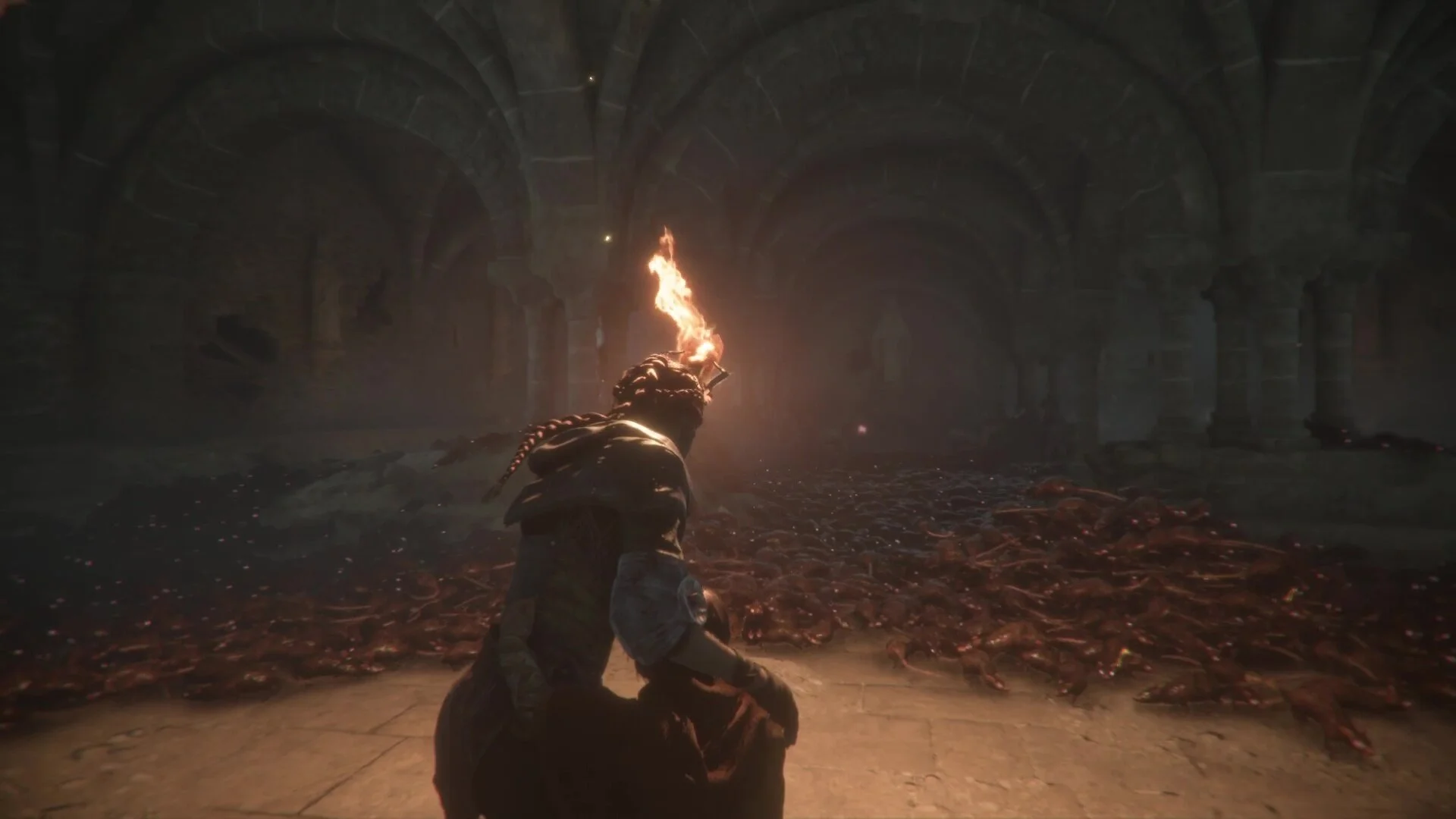 To understand this, I have to try and explain the rat swarms themselves, as they drive most of the game's other systems and mechanics along the way. Narratively they are a plague of vermin who carry disease and death wherever they go, while functionally they operate as a floor-is-lava game system in order to bring about some challenge. In areas full of the swarm, the ground will be writhing manically with tiny rat bodies as they scramble about and try to reach their next meal. This forces you to always look for light sources, as it repels the swarms' advances. As luck would have it, the entire game is littered with ways to light up different areas and pass through them, thanks to conveniently places sticks and torches.